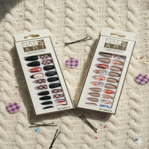 Give your hands an instant makeover with this 24-Piece Long Fancy Artificial Nail Set, designed to deliver a salon-like finish in just minutes. Each pack includes beautifully crafted nails in stylish colors and trendy patternsβperfect for parties, weddings, daily wear, or any special occasion. Made from high-quality, lightweight material, these nails feel comfortable and natural while offering long-lasting durability. The included strong nail glue ensures the nails stay secure and fabulous all day long.