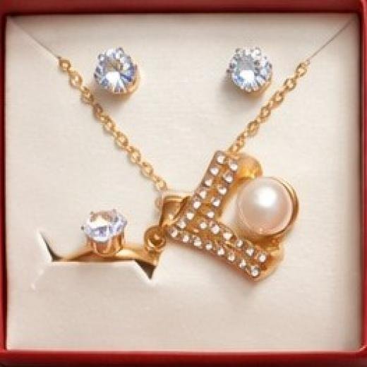 All-in-One Fashion Jewelry Bundle Premium Gold-Toned Jewelry Box Set Elegant Pearl & Crystal Necklace, Tops, and Ring Collection