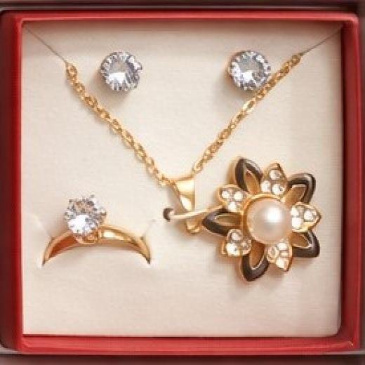 All-in-One Fashion Jewelry Bundle Premium Gold-Toned Jewelry Box Set Elegant Pearl & Crystal Necklace, Tops, and Ring Collection