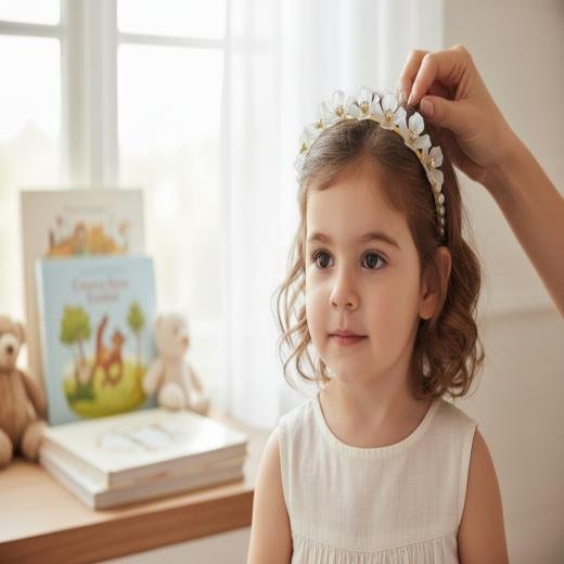 Transform your little one into a princess with our Elegant White Floral & Pearl Hair Band. This stunning headpiece is meticulously crafted to blend traditional elegance with modern style. The combination of soft white flowers, sparkling crystal-studded centers, and a pearl-embellished band creates a truly magical look for any special occasion.